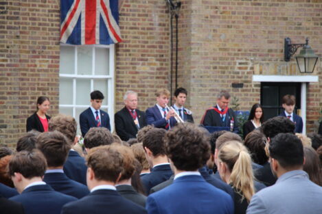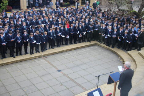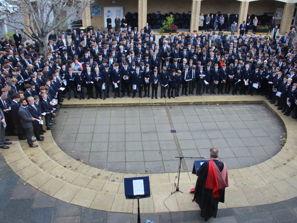 Today, our school community was proud to congregate in the courtyard to mark Remembrance and remember those who gave their lives in the two world wars and subsequent conflicts around the world. As in years before, Louis now in Upper Sixth played the Last Post as we observed a two-minute silence. Our Head Prefects, Phoebe and Jack, and Deputy Head Prefects, Theo and Olivia, laid a wreath during the ceremony on behalf of the School.