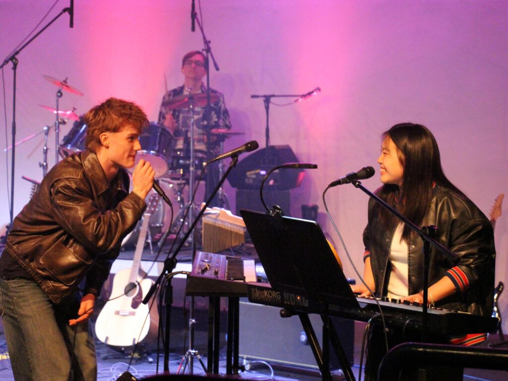 Later in the evening, the Year 10 & 11 Rock Band delivered one of the most musically complex sets. Their rendition of Arctic Monkeys’ Fluorescent Adolescent was full of charm, followed by a powerful and technically strong performance of Iron Maiden’s The Trooper. Lead singer Tobi closed sentimentally with There Is a Light That Never Goes Out, displaying excellent control and emotional maturity.