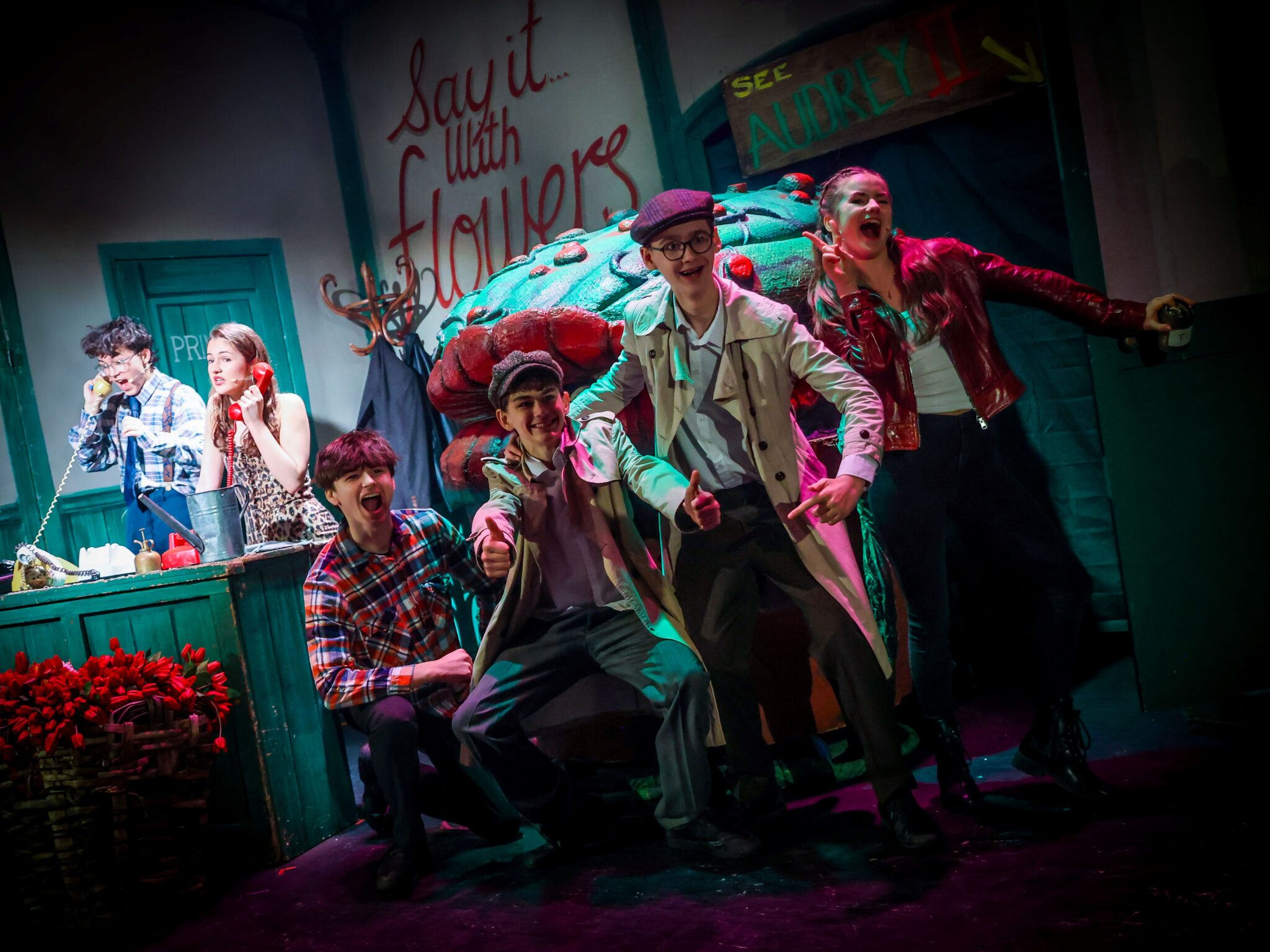 Equally impressive was the production’s attention to detail. The set design transformed the stage into a convincing 1960s urban landscape, complete with a fully functional flower shop. Costumes were period-perfect, and the band, led by Musical Director and Conductor Mr Wright, delivered a superb performance of the iconic score.