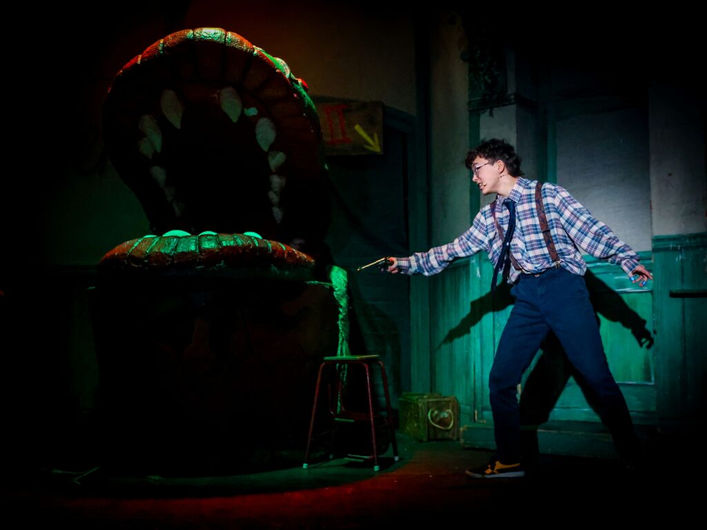 From the opening number to the final curtain, the cast delivered a performance brimming with confidence and charisma. The role of Seymour was portrayed by Lawrence in Upper Sixth with heartfelt sincerity and strong vocal control, capturing the character’s journey from timid underdog to desperate man caught in a monstrous bargain. His love interest, Audrey, was brought to life with both vulnerability and charm by Emily in Lower Sixth, her rendition of Suddenly, Seymour a standout moment of emotional depth.
