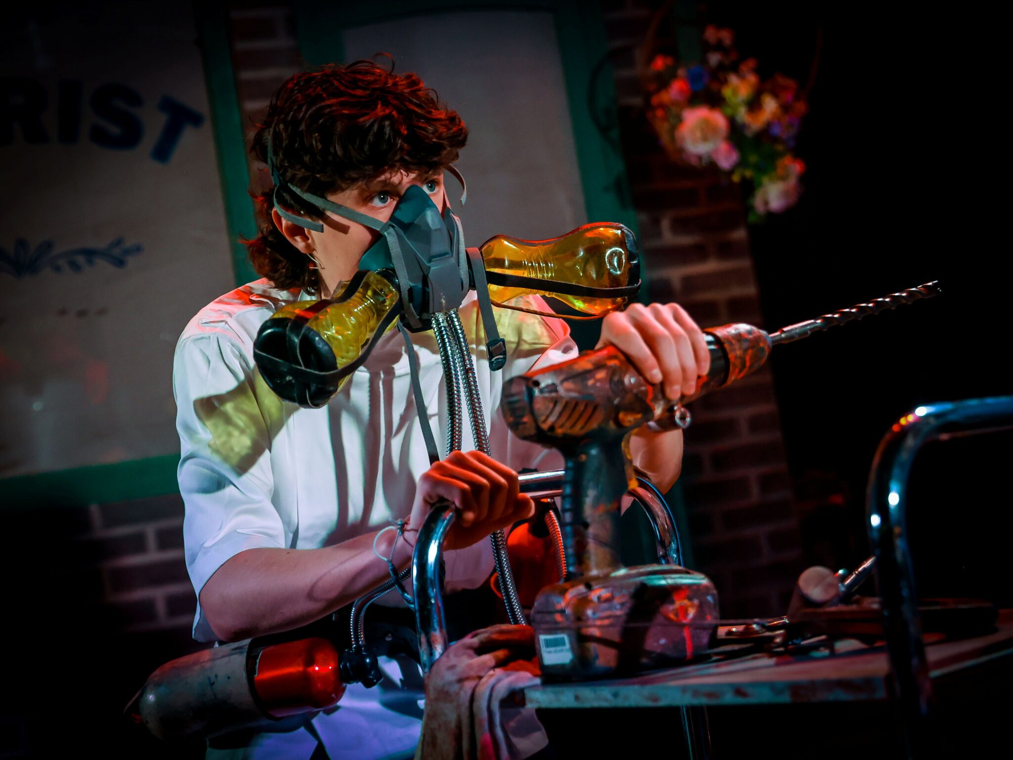 A standout performance came from Upper Sixth student Joe, who delivered a scene-stealing portrayal of the sadistic dentist, Orin Scrivello. Dressed in a sharp leather jacket and wielding a terrifyingly oversized drill, Joe embraced the role with energy and dark comic flair. Despite the character’s villainy, Joe’s confident stage presence and impeccable timing earned him some of the biggest laughs of the night.