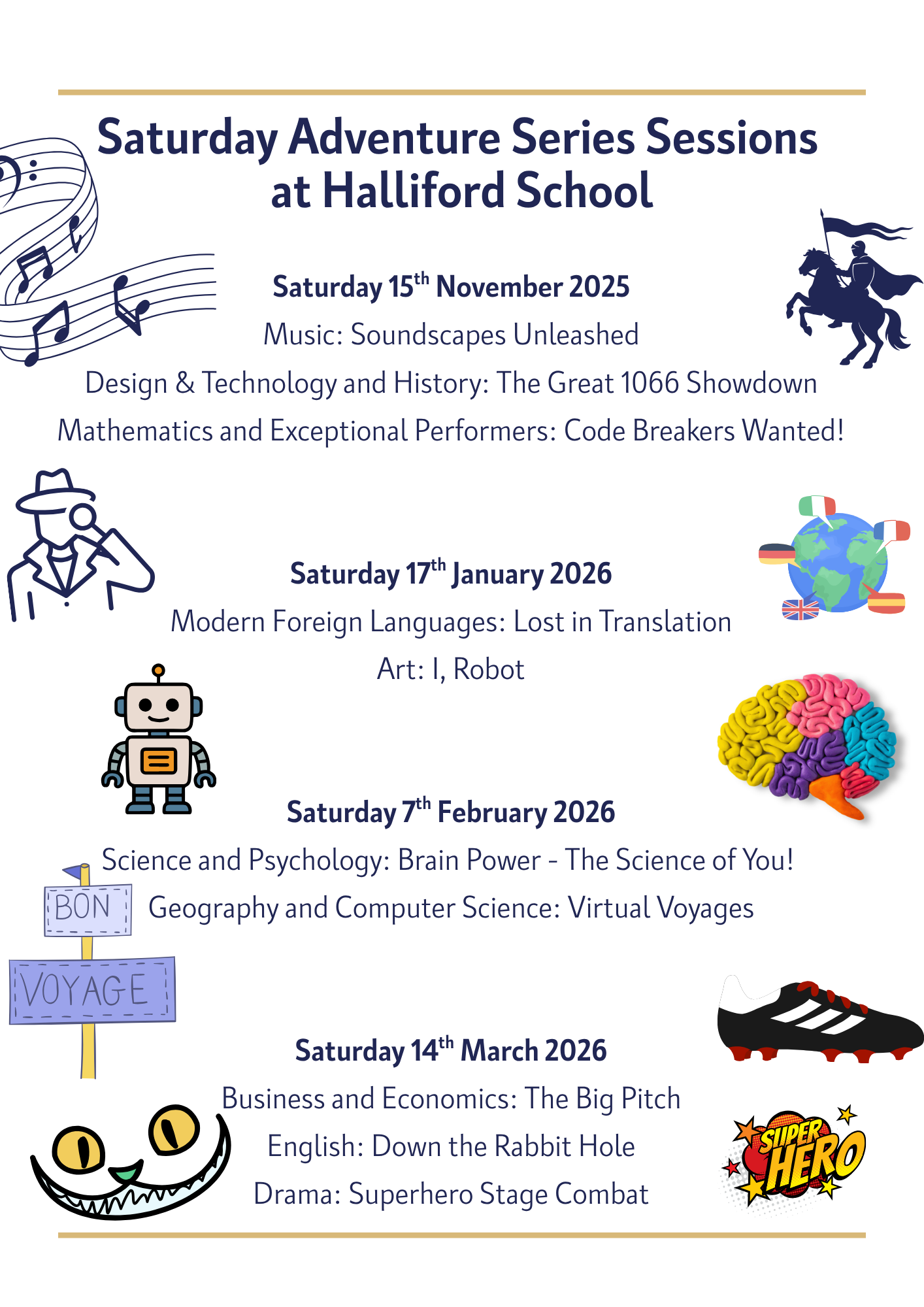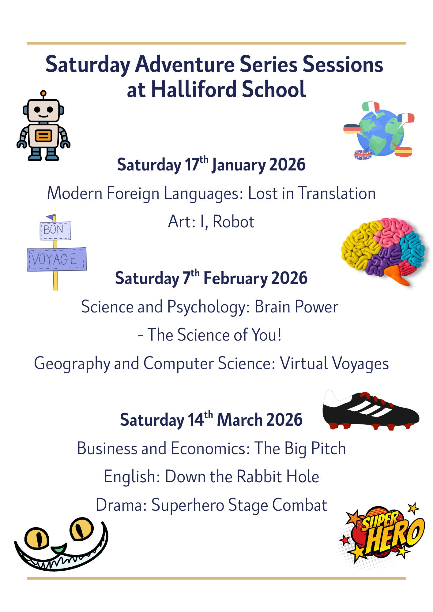 We are thrilled to invite your son to our Saturday Adventure Series at Halliford School. These free and fun-filled events are open to boys in Years 5 and 6.